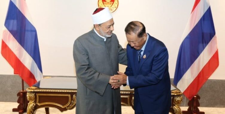 من جهته أعرب شيخ الأزهر عن تقديره لرئيس مجلس النواب التايلاندي على حفاوة الاستقبال، وامتنانه للعلاقات المشتركة بين جمهورية مصر العربية، وبخاصة الأزهر ومملكة تايلاند، وسعادته بما استمع إليه من تميز خريجي الأزهر في تايلاند، واندماجهم إيجابيًّا في المجتمع، ومشاركتهم في نهضة بلادهم من خلال قيادة المؤسسات والمراكز الإسلامية، مؤكدًا استعداد الأزهر لزيادة المنح الدراسية المقدمة لأبناء المسلمين في تايلاند، وإنشاء مركز لتعليم اللغة العربية لتعليم التايلانديين لغة القرآن الكريم، ورفع أفق التعاون بما يناسب احتياجات المجتمع التايلاندي وتطلعاته المستقبليَّة.