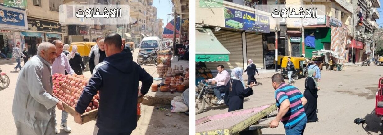 بلبيس: إزالة إشغالات من عدة شوارع رئيسية ورفع الباعة الجائلين.